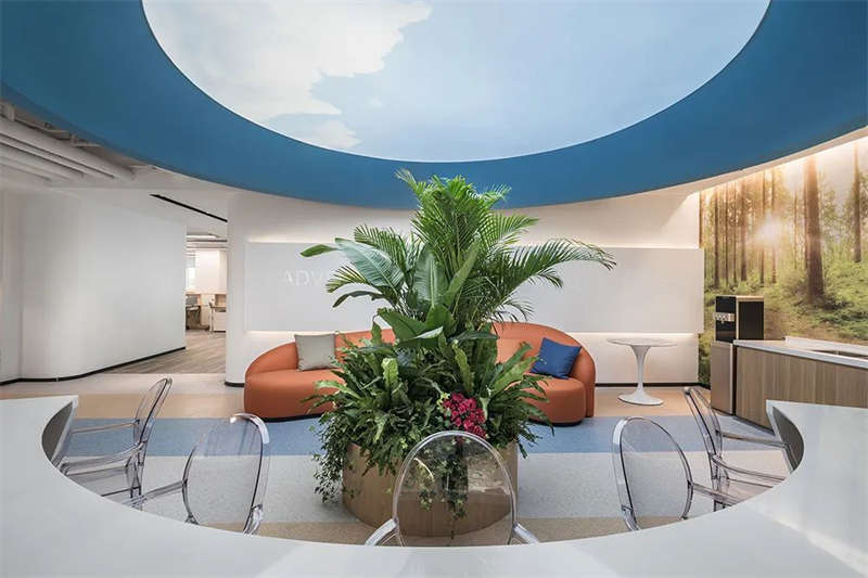 静谧中叠出粼粼波光,让本是凝固的空间,因人类与自然、时间与空间有了交叠,过往与未来也有了关联;复行数十步,豁然开朗…"虚"与"实"相生为境,入:未来之境,独特的构成方式、造型艺术感为人类电子产品护航;引进公共办公区,公共办公区的空间以原色调为主,让整个办公室设计看起来更为沉稳低调,营造出一种安静沉淀的氛围。趣味性的吧台、参差的绿翼"无尽之柱",艺术创意品味的贯穿,享受与众不同的办公方式。