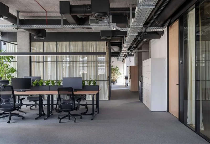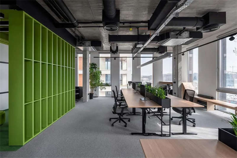 开放式空间因为穿插了大量的会议室而被分隔成若干小型区域;而那些由此形成的开放协作区则被赋以清新的色彩,强调其功能特性的同时也营造出一个活力多彩的空间表情,与此同时,这些空间也与其它区域一样保持同样的工业触感和一致的基调。