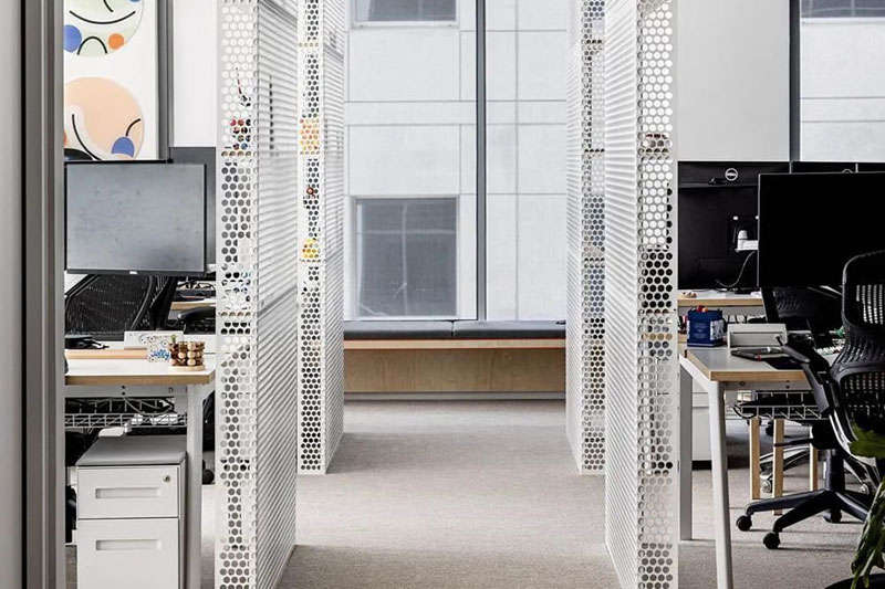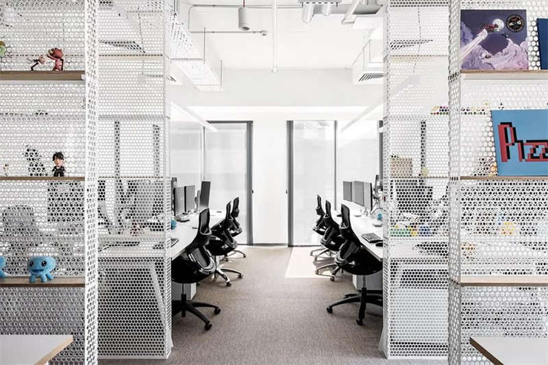 就如同吹出来的肥皂泡泡自由飘散于空中的原理一样,设计团队将工作区和各类休闲设施、会议空间、协作空间和专注空间等自由穿插布局,从而形成一个流畅、动感、无缝连接、且充满趣味的混合形态工作布局。