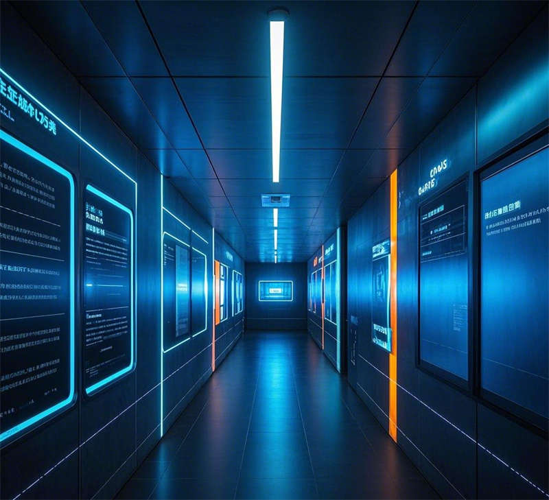 整体设计以银灰色和深蓝色为主色调,金属质感与光影交错贯穿始终,智能科技与未来感完美融合,为客户打造了一个兼具功能性与视觉冲击力的未来办公空间。