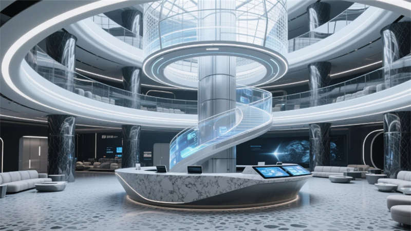 厘米级定位系统织就空间的数字神经网络,实时感知行为轨迹的热力图谱。增强现实技术将虚拟协作层注入物理环境,会议纪要悬浮于白墙上空,项目进度可视化流淌在地面光带中。智能环境控制系统如同无形的指挥家,根据沟通场景自动调节光域范围与气流速度,让空间氛围随对话内容自然脉动。当数字逻辑与建筑肌理深度融合,办公室便升维为承载集体智慧的生命体。