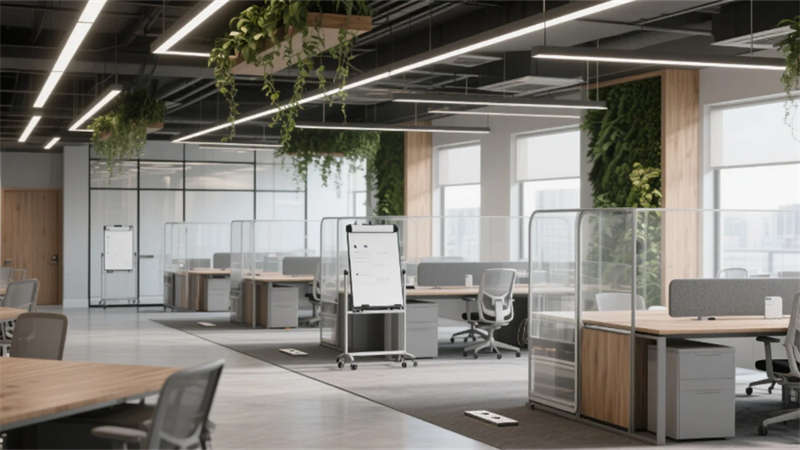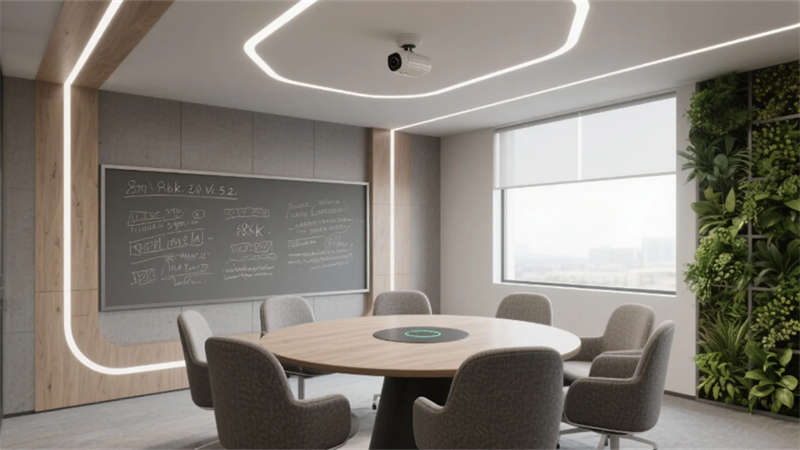 设计更以人文触觉消解科技冰冷感:企业标志性的雾青蓝贯穿于软装细节,4000K色温照明呵护视觉舒适度,模块化绿植系统构建立体呼吸网络。从智能调光玻璃到声学毛毡墙面,每处创新皆隐于无形,让科技真正服务于人的感知体验。这座合肥办公空间,正以静默的设计语言诠释着未来工作场域的更多可能——当自然、科技与人文在此共振,办公不再是程式化的容器,而成为激发创造力的有机生命体。