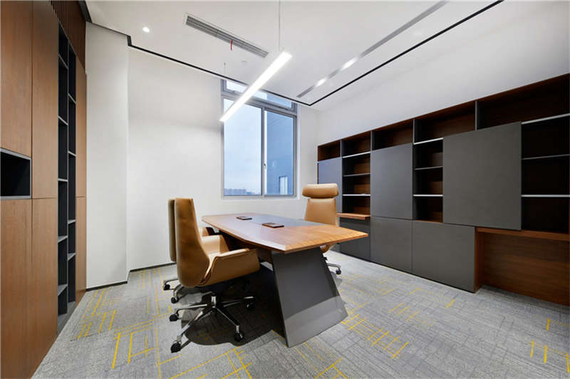 开放办公区打破了传统的办公环境,随时沟通无障碍,开启高效与人性化办公新模式。打破封闭,开阔的视野和舒适的办公椅,纾解工作的疲惫,错落有致的线条对空间自由分割,构建出的简约造型和光影效果让空间在错综的线条中无限延伸。