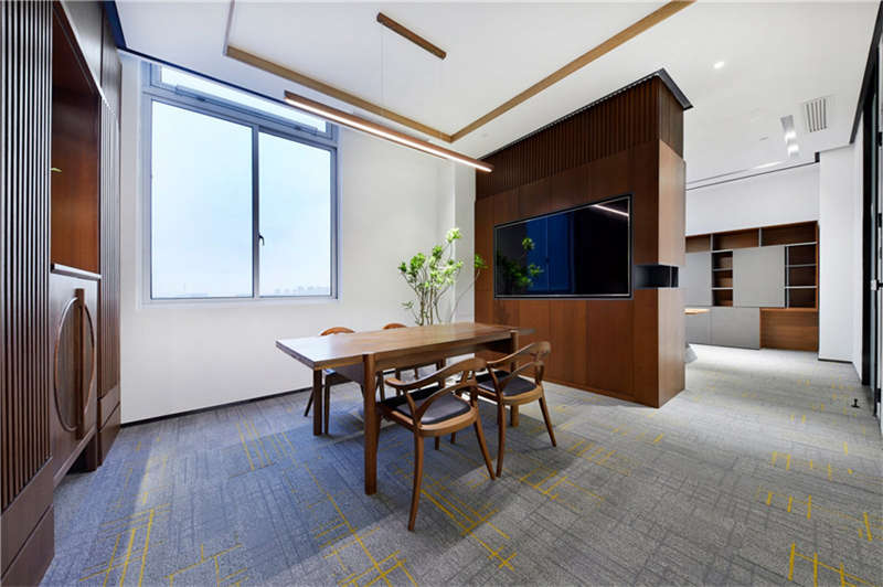 多功能区就是一个万能区域的存在,具备各种功能属性:当需要进行一场生日趴、或者员工大会、又或者是路演活动时,这里便可形成一个共享的大空间,满足多人数使用的需求。当然,也可切换成一个封闭空间。