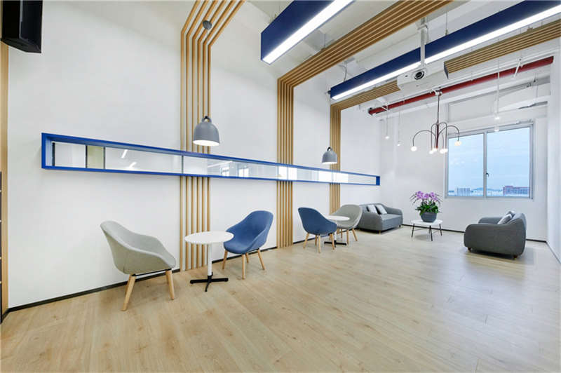 工位数量需求虽然庞大,但甲方对多元化的功能区的需求并未减少。于是我们将咖啡吧、茶水间、休闲区这几个功能进行融合,破除了空间的界定,将水吧区打造成一个开放性的多功能区域,赋予它全新定义,从而达到满足员工的一系列休闲目的。