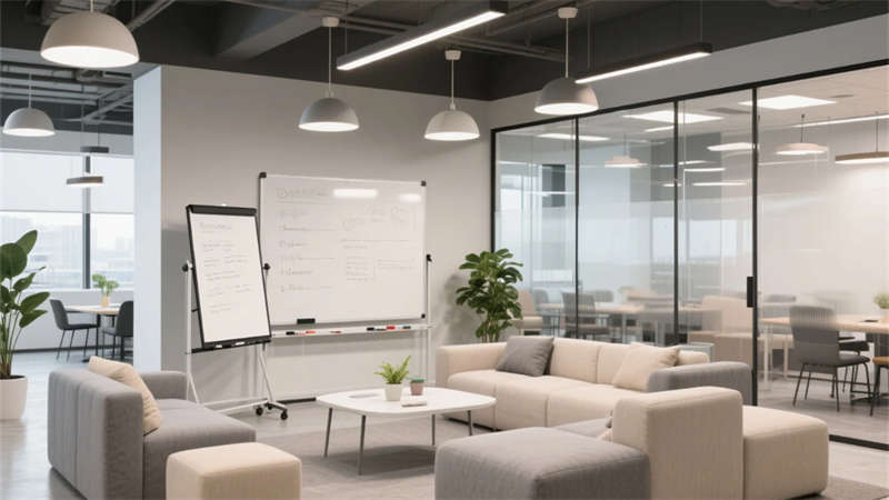 这个办公室设计以现代简约风格为核心,通过流畅线条和中性色调,打造出一个和谐而高效的工作环境。整体布局强调开放性与功能性,功能区之间无缝衔接,利用玻璃隔断和自然光,营造通透感。接待区以温馨氛围迎接访客,开放办公区促进团队协作,会议室提供宁静讨论空间。休息区与茶水间则融入绿植元素,为员工提供放松角落,提升日常舒适度。经理办公室和专注区平衡了私密需求,协作空间鼓励创意交流。设计注重人性化细节,如柔和灯光和悬浮家具,减少视觉杂乱,同时强化生态理念。整个空间不仅美观实用,还体现了对员工福祉的关怀,营造出积极的工作氛围。蚌埠元素贯穿始终,展现地方特色与现代美学的融合,让办公环境成为灵感源泉。