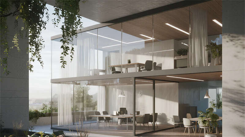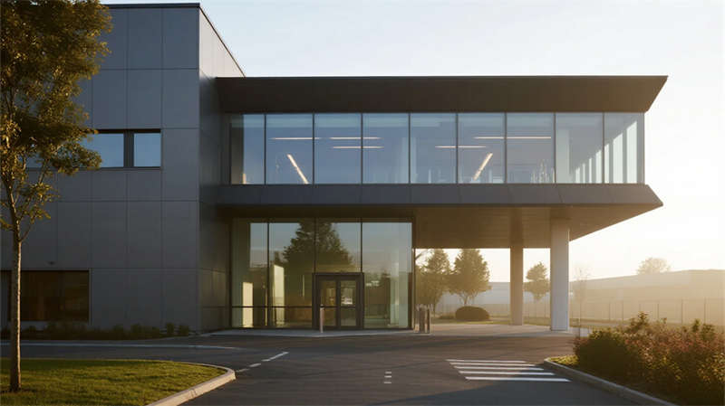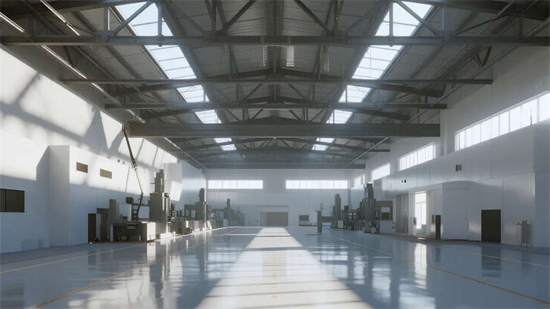 本设计以现代简约语言重构厂房美学。设计摒弃冗余装饰,聚焦材料本质——银灰金属立面与通透玻璃幕墙形成虚实对比,利落线条切割出几何体块,在光影流动中彰显力量感。厂区布局强调功能与自然的共生:屋顶光伏板阵列呼应绿色生产理念,嵌入式空中花园与竹林连廊为钢铁空间注入呼吸感,员工休憩区模糊了工业与生活的边界。