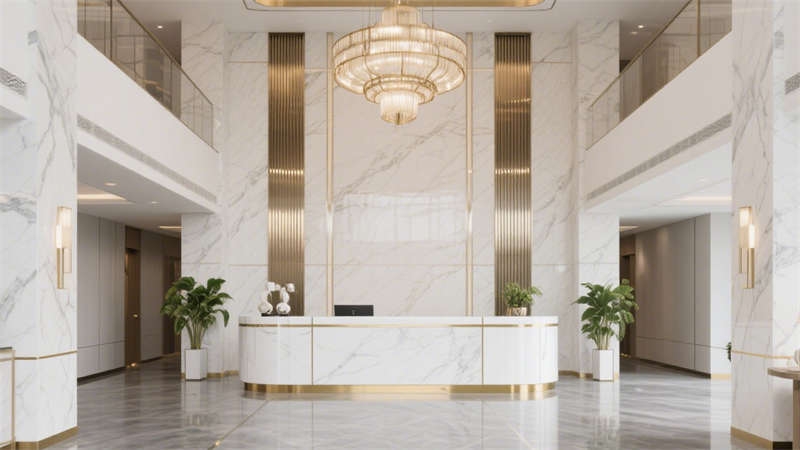 本设计以轻奢风格为核心,通过柔和的基底色调与精致的细节搭配,构建出兼具质感与舒适度的酒店环境。空间以米白色与浅灰色为基础,巧妙融入金色金属线条作为点缀,既避免了过度奢华的厚重感,又增添了空间的精致度。墙面与地面选用细腻的大理石纹理材质,在光线映衬下呈现出自然的光泽,提升整体空间的高级感。家具选型注重线条的简约流畅,搭配柔软的布艺软装,营造出温馨舒适的居住氛围。各个区域在设计上保持风格统一,从公共空间到客房区域,都延续了轻奢的设计语言,让整体空间既富有格调,又能给人带来放松惬意的居住体验。