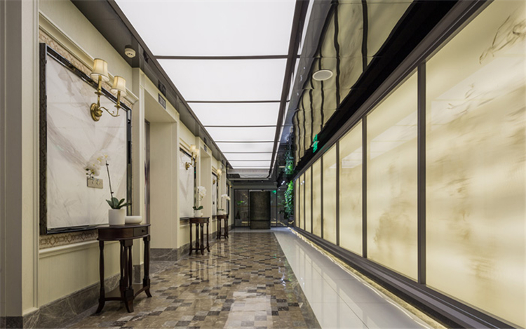 比如,过道两侧是大理石面装饰,配以横竖向黑色边框,简单而不失典雅;大厅明亮简洁,棕黄色花摆营造温暖气氛,高低错落,简单大方;咨询室打破一贯的严肃风格,令人舒心的简约装饰以及独有的密闭性彻底打消客人的紧张心情,消除距离感!