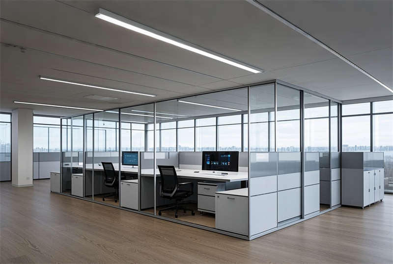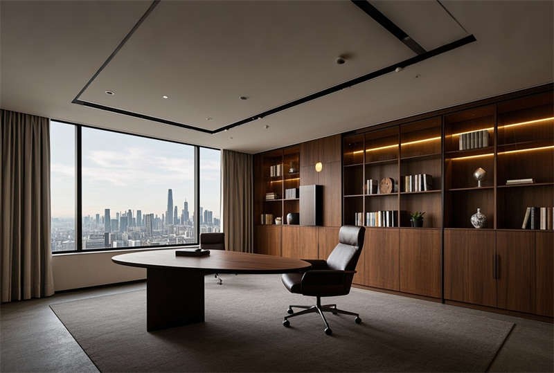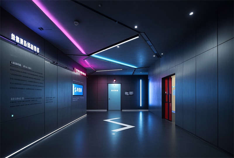 本案为 6000 平方米现代化科技办公楼装修项目,设计采用 ' 未来办公生态 ' 理念,以蓝灰主色调构建专业商务氛围。空间规划突破传统格局,大堂设置 10 米挑空 LED 艺术装置墙,智能光控系统实现昼夜模式切换。开放式办公区采用模块化组合家具,集成无线充电、智能升降等人性化功能。会议室配置可触控雾化玻璃隔断系统,实现空间灵活转换。特别设计的阶梯会议中心配备全景声控系统,墙面采用吸音穿孔铝板确保会议私密性。环保理念贯穿始终,选用零甲醛板材和可回收地毯,屋顶花园配置雨水收集系统。灯光设计采用色温可调 LED 光源,通过智能中控系统实现场景模式一键切换,打造高效、舒适、可持续发展的新型办公生态圈。