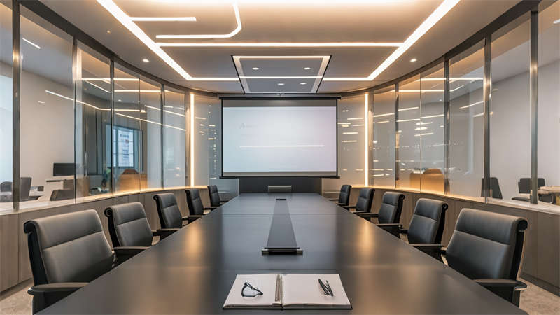2)智能会议系统集成无线投影、声学优化和情景照明模式;