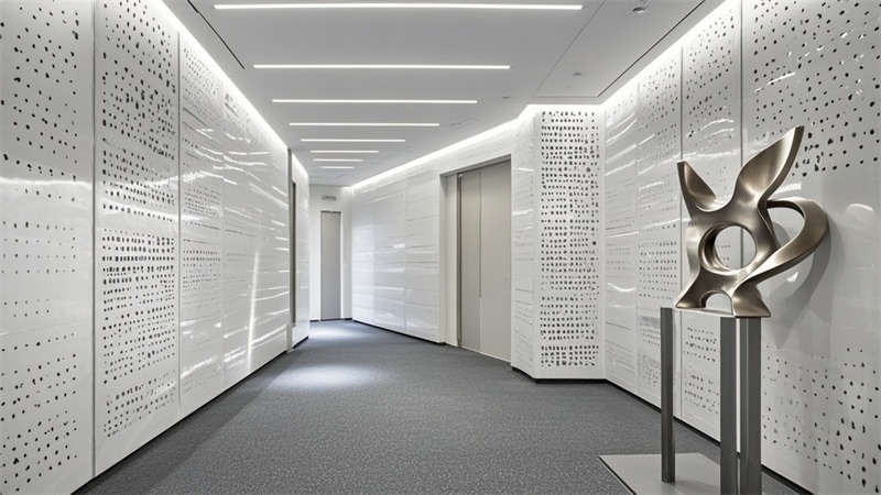 本项目为4500平米现代简约风格办公楼装修设计,整体以'高效、人文、智能'为核心理念。空间规划采用动静分区原则,大堂与公共区域保持8.4米挑高,通过玻璃幕墙最大化引入自然光线。