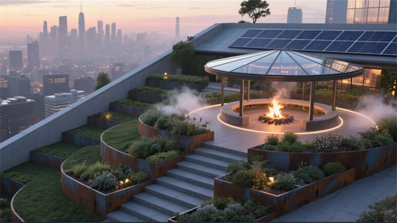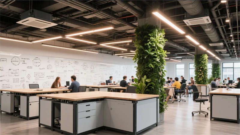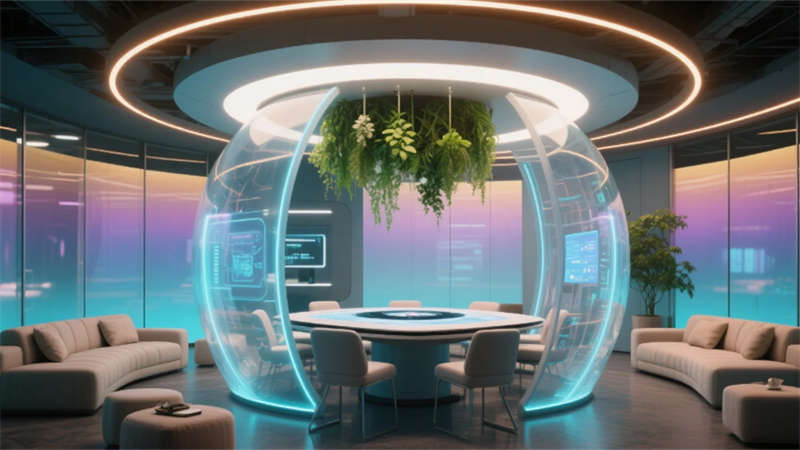 最具突破性的神经中枢系统贯穿全楼,自适应环境调节光线、温湿度与声景,冥想舱的仿生穹顶与创客空间的工业活力形成张力平衡。屋顶花园成为能量再生场,光伏凉亭与雾森系统在合肥的晴空下营造城市绿洲。