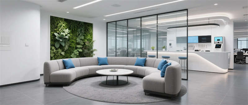 这座金融企业办公楼的设计以智能科技融合为核心,巧妙结合现代简约美学与功能性,为日常办公注入活力与效率。整体空间采用流畅的线条和中性色调,通过玻璃隔断和金属细节营造通透感,蓝色元素作为视觉亮点,象征创新与稳定。大堂区以开放式布局欢迎访客,智能照明系统调节氛围;开放式办公区强调协作,可调节家具提升舒适度;高管办公室则注重私密与高效,落地窗引入自然光。会议室配备先进投影技术,确保讨论精准;休息区和食堂区融入绿植与社交元素,促进员工放松;多功能厅支持灵活转型,满足多样活动;休闲区融合健身与阅读,体现人文关怀。设计不仅优化工作流线,还强化了企业形象,将科技感与舒适性无缝衔接,打造一个前瞻性的办公环境。位于合肥的这座空间,以城市现代精神为灵感,成为金融行业的标杆之作。
