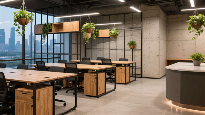 本项目以“自然渗透”与“灵活共生”为核心,将轻工业风的理性框架与生态绿意巧妙融合。空间打破传统办公割裂感,通过绿植墙体、透光天井与流动线条,在合肥城市肌理中营造出呼吸感十足的职场绿洲。