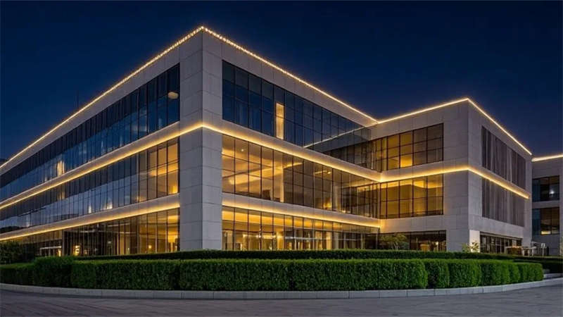 内部空间聚焦人性化体验:开放式办公区借由落地窗引入充沛自然光,搭配原木元素软化工作氛围;会议室以通透玻璃隔断实现灵活协作;休闲咖啡区则通过暖调灯光与弧形家具构建松弛社交场景。屋顶花园将城市景观转化为员工休憩灵感源,模糊室内外界限。