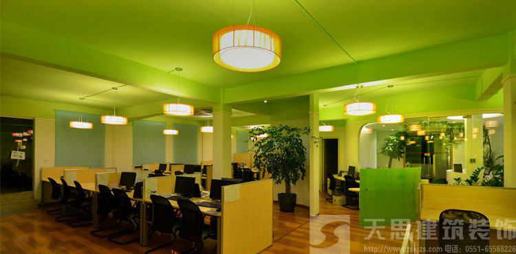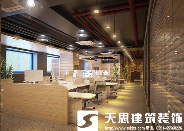 员工办公区顶面设计方案,一般大型的员工区顶面装修大多采用平顶装修,吊顶材料也多是铝扣板,或是是矿棉板吊平顶。矿棉板吊顶安装的灯多是圆筒灯或者是节能灯具。铝扣板吊顶比较单调多用吊顶灯装饰。