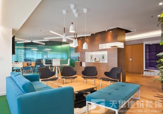 办公区域的设计:设计师在设计的时候,采用不规则的办公布局,在设计师看来这样的设计可以各取所长、各补所短,在开放空间布局的同时,为每一个员工打造一个属于自己的私人空间,不规则所打造的办公空间,让空间充满了活力。