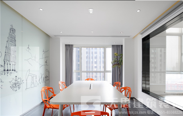 钢化玻璃、仿木纹瓷砖、布艺窗帘、办公隔断