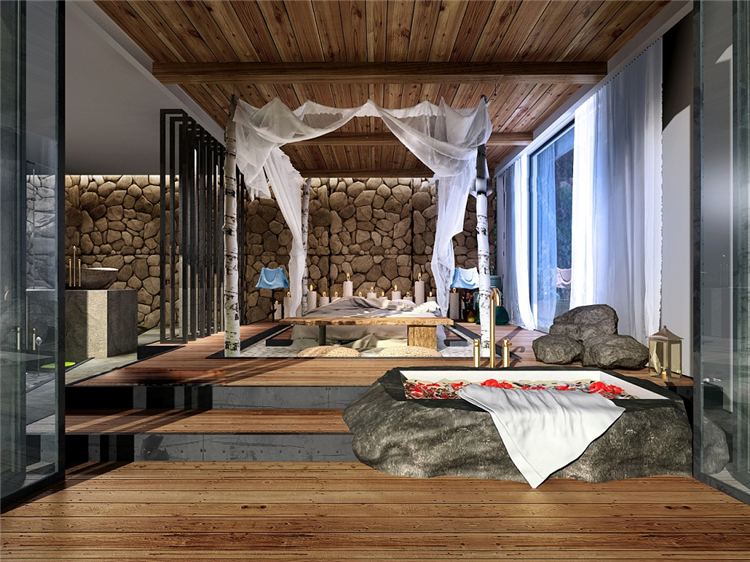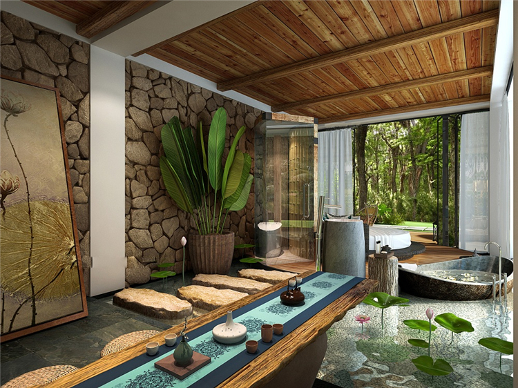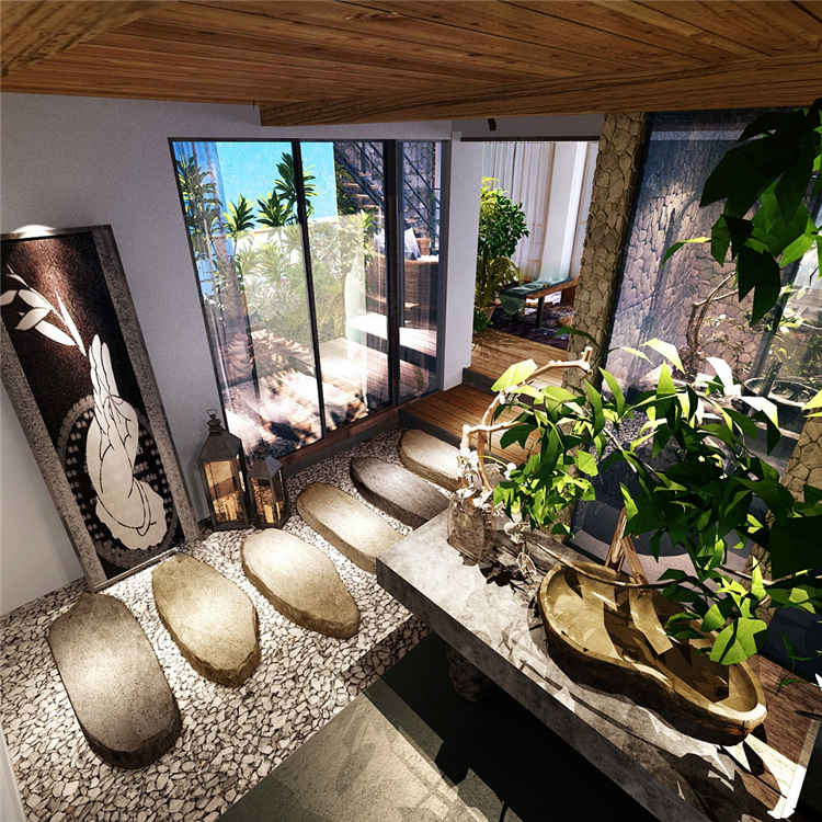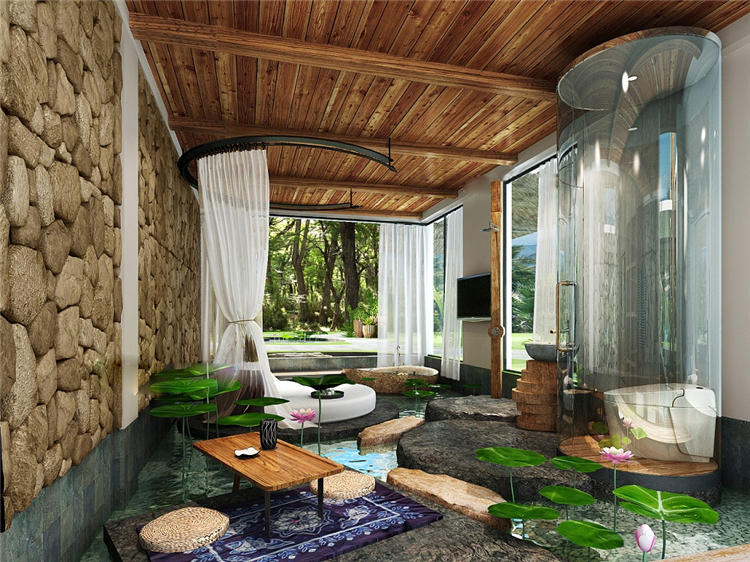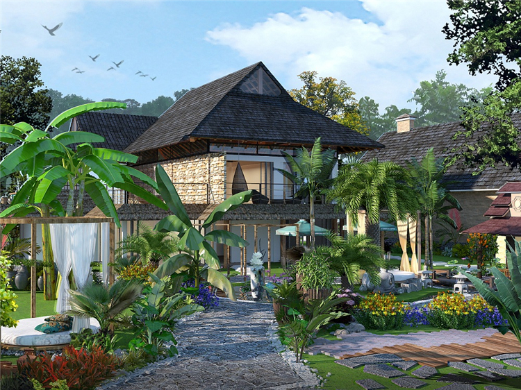 本案民宿度假酒店采用东南亚装饰设计风格