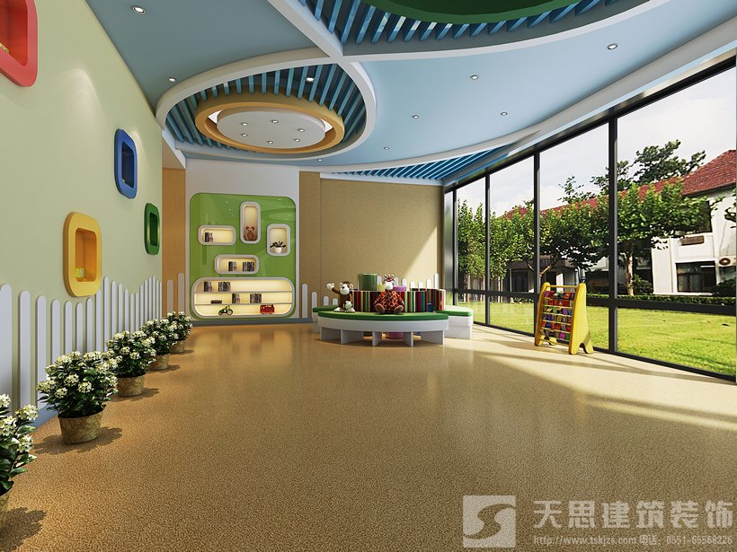 游戏区是幼儿娱乐嬉闹的场所,幼儿需要一个较大的空间来满足自己对事物的冲动与好奇,这个空间要足够的宽敞与安全才能够保证幼儿的活动顺利进行,在装修这类场所时要十分明确安全问题,空间的增大意味着孩子有更大的活动范围,容易给幼师造成管理上的困难,所以既要满足幼儿的活动需求,又要保证他们的人生安全显得至关重要。