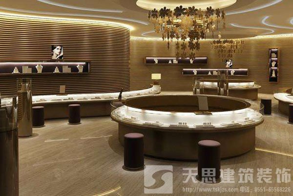 在珠宝店装修设计时也要注意展柜的装修设计因为,当一件件珠宝放在展柜里时,人们不仅是在看珠宝,同时也在看展柜。色彩在塑造空间性格时作用非凡。作为珠宝店装饰性的照明,从华丽的吊灯到发光灯槽,它们对视线的吸引均远远大于它们本身的照明功能,从而成为一种吸引顾客的装饰手法,使得处在该环境空间中的物品较周围区域的物品更具竞争力。