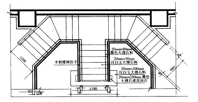 材料的数量,这是一幅楼梯的平面布置图,结构比较简单而且使用的装饰材料比较少,所以图中同事包含了装饰