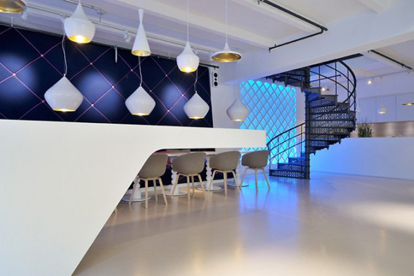4、办公室设计的时候在接待区的空间里面做好一些柜台,放一些咖啡,茶叶等,方便客户喝茶,对接待区的不够家具也是有很高要求的,原则是让环境充满轻松,惬意的感觉。