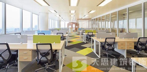 办公室装修设计的墙面色彩与灯光效果有着密切的关系。如果室内墙壁是蓝色或绿色,就不宜用日光灯,而应选择带有阳光感的黄色为主调的灯光,这样就可以给人以温暖感;如果墙面是淡黄色或米色,则可使用偏冷的日光灯。因为黄色对冷光源的反射线最短,所以不刺激人的眼睛;如果室内摆了一套栗色或褐色家具,适宜用黄色灯光,可以形成一种广阔的气氛。