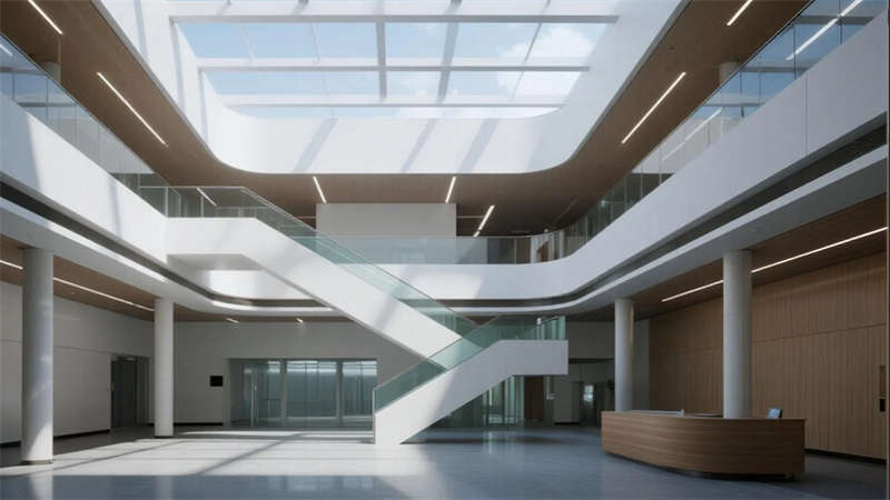 设计始终贯彻生态对话策略——天窗系统最大化减少人工照明,本土植被软化硬质边界,连廊格栅调节微气候。在这里,理性制造与诗意栖居达成平衡,成为滁州产业升级的时代注脚。