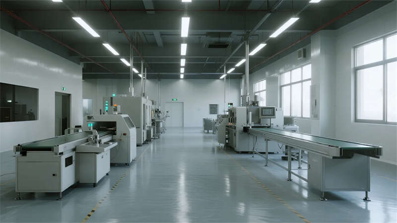 空间内核强调人性化体验:挑高中庭以悬浮楼梯创造轻盈动线,屋顶花园成为员工触摸自然的窗口;无柱车间与智能实验室展现工业精密感,而木格栅连廊与绿植墙则注入人文温度。夜幕降临时,建筑化为光影容器,冷白光带勾勒结构轮廓,暖黄窗格透出工作场景的活力。