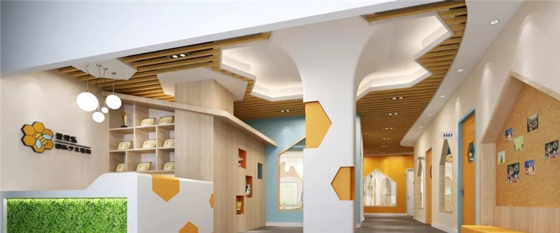 将品牌形象贯穿空间始终,加深品牌印象和空间趣味,也寓意学习语言要像勤劳的蜜蜂一样付出努力,慢慢累积,最终收获甜蜜的果实。