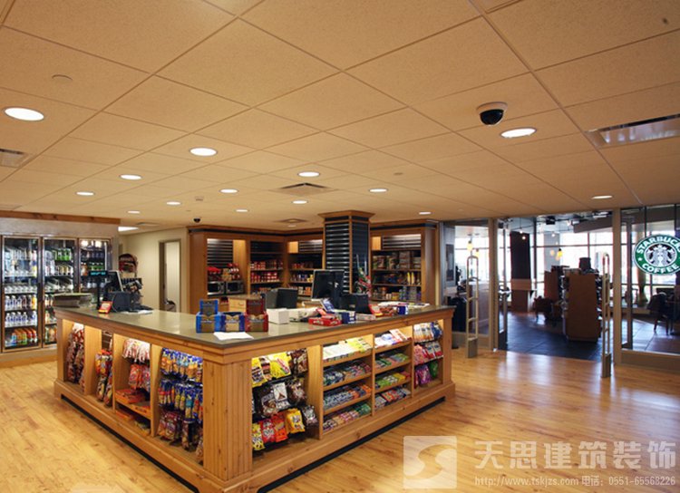 便利店的装潢效果应该最有效地突出商品的特色。装潢不宜采用丰富、鲜艳的色彩,不要让装潢的色调来分散顾客对商品的视觉注意力,最好是天、地、墙都采用反光性、衬托性强的纯白色。而且纯白色给人的感觉就是整洁、干净,同时天、地、墙统一色调,会给人造成较大空间的视觉偏差。便利店对店铺层高的要求一般在3米以上,但由于所选择的店面多数处于底层,天花板下多数有下水管、电线管、消防管等管道,这时不要安装吊顶天棚将这些管道隔离,只要这些管道粉刷成纯白色,并将光源置于管道之下即可,这样既可以保证商店的空间,又可以节省费用。