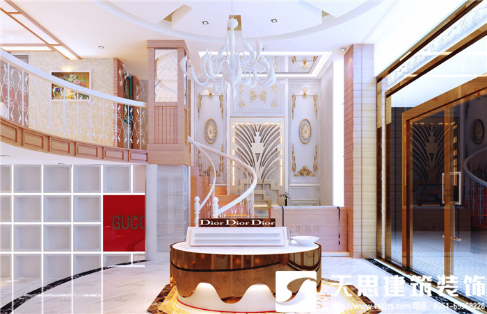 Gucci主要采用的是欧式设计风格,一个成熟品牌给人的第一感觉应该是具有高度美感的视觉享受。对于品牌服装店来说,装修风格到位就是成功的一半。会给人以随意、轻松的感觉,有对比强烈的色彩和绚烂的灯光,折放、正面展示、侧面展示要互相穿插,货架的摆放要在随意中又有整体的感觉。女装区的色彩要有女人味,线条以流线、纤细,柔和的灯光。