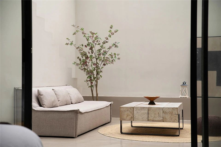 入口空间序位的错次,意味着新的开放与延伸。复行数十步,豁然开朗。觅隐伫立于闹市之间,自行营造一方天地,拥有着独特的情绪感染力。简洁、平衡的建筑构造,柔和的光线透过玻璃砖,光与影之间,朦胧感与通透感相互融合,达到一种隔而不疏的空间氛围。