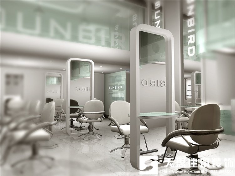美发店的操控区占整个店面面积的四分之三到三分之二不等,操作区是直接服务顾客的地方,设计师秉承以宽松、干净、舒适为宗旨,考虑到了顾客方便、畅通。美发店整体设计要求镜子要明亮,椅子、床铺要精美,外形要独特,色调要统一。