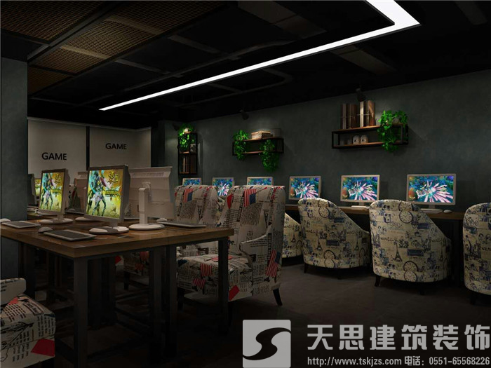 网咖风格在做出自我特色的同时,还保证了一致性,也就是保持网咖招牌、大门、吧台、形象墙、墙面和室内布局等各个方面的统一。整体装修理念一定要符合当地环境改善目的及顾客需求。