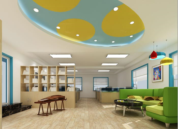 音乐教室的设计:对于每一个人来说,音乐都是美好的,对于孩子来说更是如此,当老师弹起钢琴的时候,孩子们在后面翩翩起舞,无疑可以激发孩子们对于音乐的兴趣,这里的一切都志在激发孩子的兴趣,然后在兴趣的指引下,达到教学的目的。