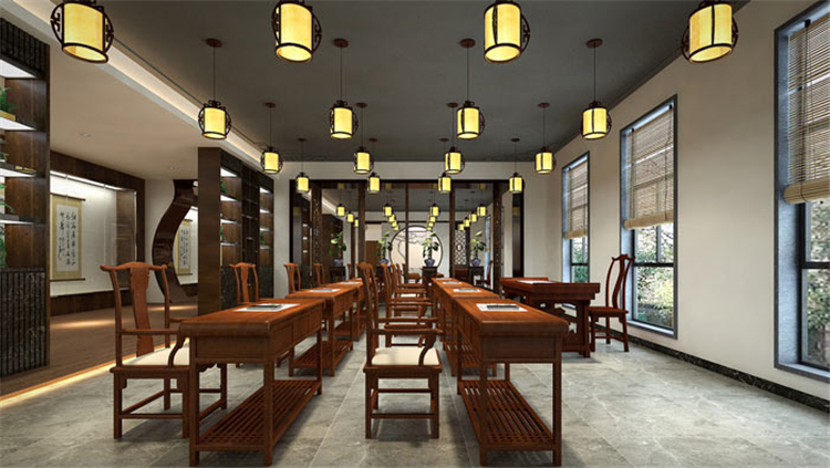 书法教育培训机构教室设计:在这里我们仿佛回到了古代,先生坐于堂上,学生坐于堂下,先生尽心教,学生尽心学,让我们看到了师生之情,让我们恢复传统美德——尊师重道。