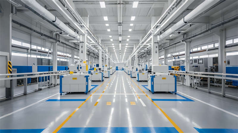 本6500㎡厂房设计采用现代工业风为核心,融合功能性与科技美学。空间规划严格遵循生产流程,划分生产、仓储、办公、辅助四大模块,通过钢架玻璃隔断实现通透性与分区管理。主色调选用深灰、浅灰、企业蓝三色体系,地面采用耐磨环氧地坪漆,墙面运用金属波纹板与混凝土质感涂料。智能化设计贯穿全厂,集成AGV物流系统、环境监测屏及LED导向标识。重点区域如入口LOGO墙、橙色休息区等植入色彩心理学应用,既保持工业空间理性特质,又提升员工舒适度。照明系统采用分级控制,生产区6500K高显指LED工矿灯保障作业精度,办公区4000K暖光营造高效氛围。