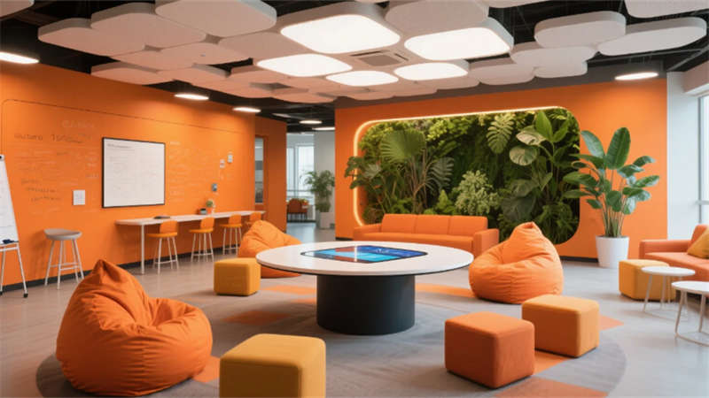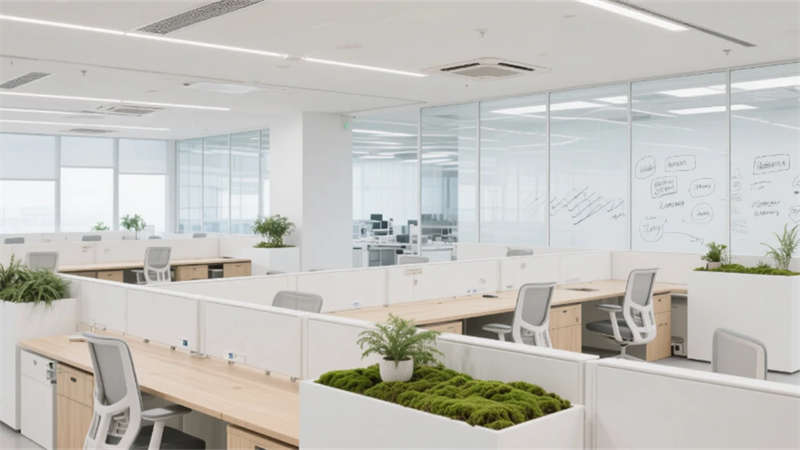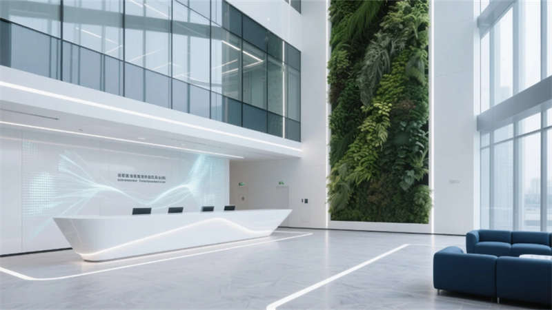 步入其中,纯净的白色与浅灰基调构筑出开阔明亮的基底,大面积玻璃幕墙邀请阳光自由流淌。室内,垂直绿墙与葱郁盆栽如音符般跳跃,为严谨的研发环境注入蓬勃生机。开放办公区强调协作与灵活,可书写的玻璃墙面激发无限创意;高度自动化的核心生产车间则如同精密的乐章,洁净无尘的环境、流线型的自动化设备与身着无尘服的工程师,共同演绎着尖端制造的严谨与高效。从充满科技艺术感的展示厅、活力四射的创意协作区,到静谧专注的工作舱、温馨舒适的休憩社交中心,再到专业大气的会议空间,每一处功能区域都浸润着统一的未来主义美学——简约的线条、智能的光影、环保的材质与克制的企业色点缀。