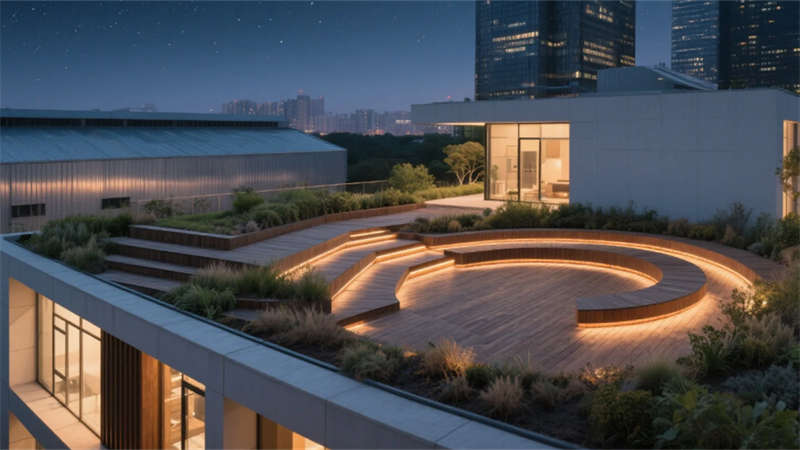屋顶花园化身绿色冠冕,夜幕下的篝火装置促发非正式交流。展示廊道如科技画廊,嵌入式光效凸显产品美学价值。整体空间将合肥的地域创新精神具象化——刚性工业骨架中生长出人文温度,机械韵律与自然节拍在此共鸣,为产业升级提供可持续的空间范本。