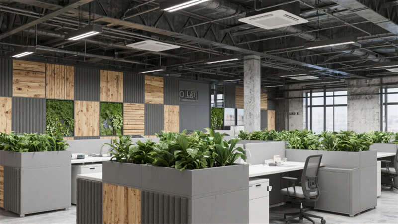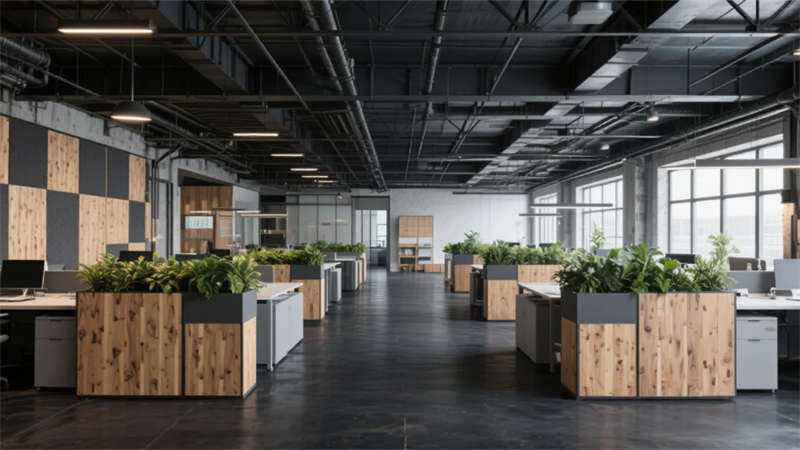 这座厂房以"工业容器中的自然共生"为核心理念,打破传统生产空间的冰冷边界。流动的银灰主调串联起全场景,裸露的结构肌理与温润木元素形成张力碰撞,智能设备在光影交织中高效运转。