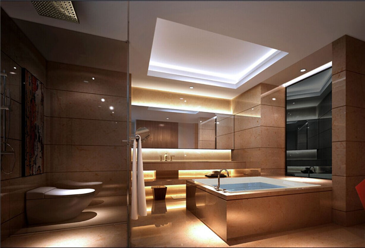 ③洗浴区。洗浴区要选择防滑、易清洁的材料。使用浴缸还是淋浴由酒店的级别、客房的档次来定。淋浴节省空间、投入较少。浴缸则舒适、华丽、可提升空间档次。