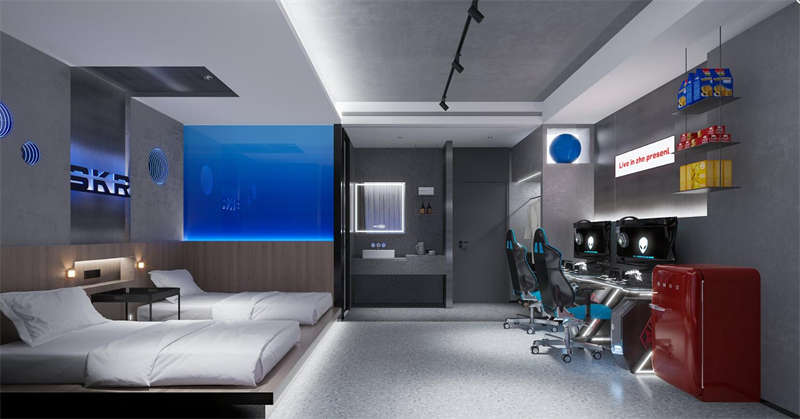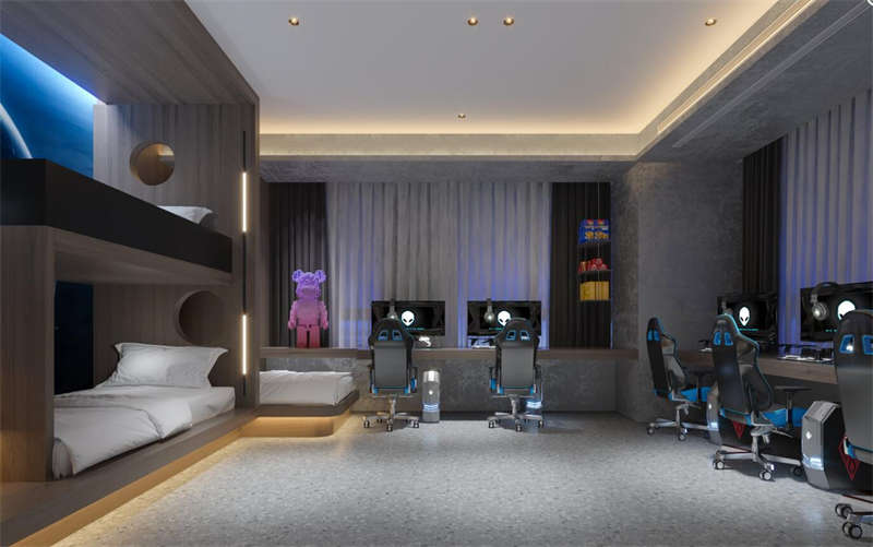 电竞酒店不同于网吧的一点就是环境舒适,安静不嘈杂,体感更舒适,由于空间隐蔽,隐私性和自由度更高一些,这些的要求需要在室内设计的环节中有所呈现。
