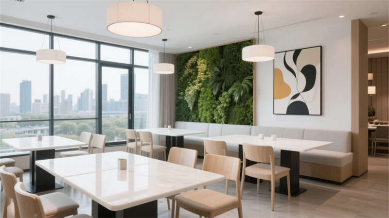 从大堂至客房,落地窗最大限度引入天光,中性色调与浅木元素构成温暖基底。餐厅与酒吧的开放式布局促进社交,而水疗中心的弧形理疗床和间接光源则传递静谧疗愈力。健身房与泳池区通过镜面、绿植墙和通透玻璃,模糊室内外界限。走廊的设计进一步强化了空间的连贯性——隐藏式灯带如星辰铺路,艺术点缀升华细节品味,每一步都沉浸于流动的简约诗意中。整个项目摒弃冗余装饰,用材质本真与光影叙事,在合肥城市肌理中打造出一处“宁静的归心之所”。