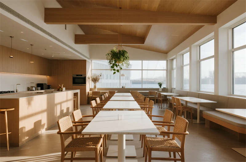 该设计以“城市绿洲”为核心理念,打造兼具功能与美学的经济型住宿空间。建筑外观采用干净利落的几何切割,浅灰与玻璃材质碰撞出轻盈现代感,入口绿植墙软化都市冷硬氛围。内部空间贯彻简约哲学:模块化家具系统最大化利用面积,榻榻米客房集成储物与休憩功能,隐藏式灯光营造舒缓氛围。公共区域强调共享与自然连接,早餐区落地窗引入晨光,绿植点缀的休息区提供社交场景。材质选择克制而统一,浅木色、微水泥与亚麻织物构成低饱和度基调,局部点缀抽象线条艺术,呼应合肥现代都市气质。设计聚焦高效运营与人文关怀,通过智能分区和环保细节,为旅客提供回归本质的宁静栖居体验。