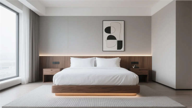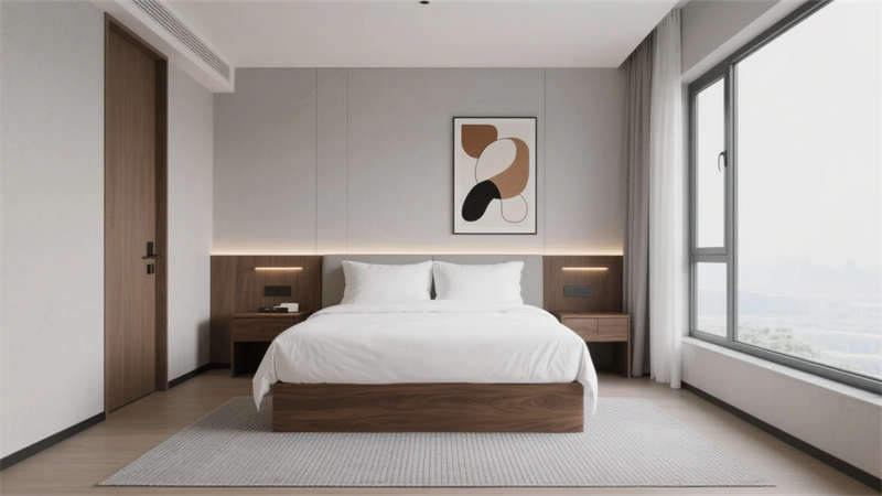 艺术品陈列成为空间的精神锚点。大堂抽象金属装置隐喻合肥科技创新基因,客房手作陶器呼应本地文化脉络,电梯厅的石材拼画以当代语言解构传统山水意境。这些艺术介入并非孤立装饰,而是与建筑结构、功能流线深度交融。