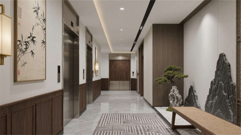 从外立面渐变格栅光影,到电梯厅微型枯山水,设计以“少即是多”的克制,让东方精神在当代场景中自然生长,成就一座可游、可居、可品的精神容器。