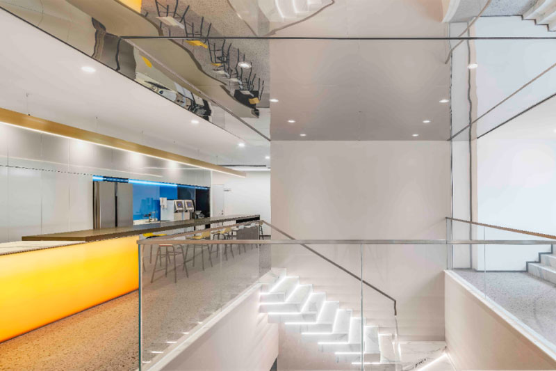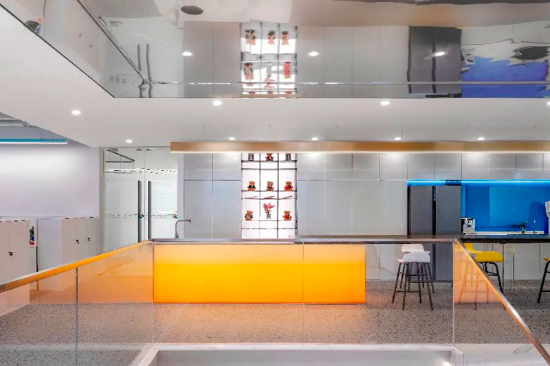 沉浸式体验人与空间交互,茶水区通过镜面天花反射,光影在立体空间中流动,超动感空间氛围就此而生,板块的不断更新为它带来永不停歇的活力,这里是“巨人”的世界。